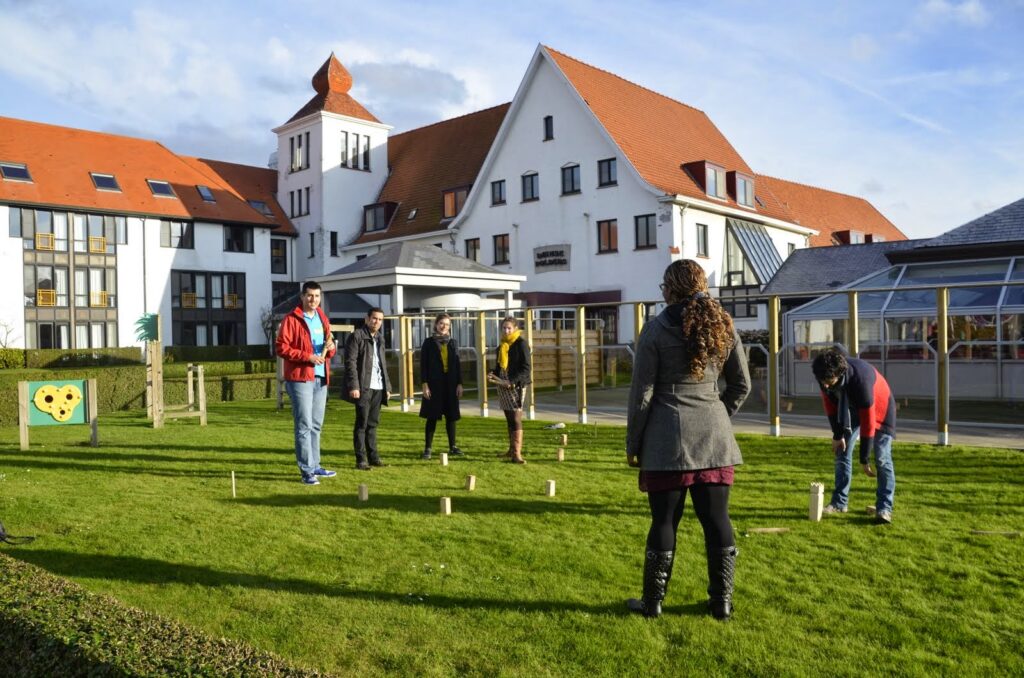 At the grounds of the Duinse Polders there is a football field, mini-golf, basketball field, and nearby we have the beach for a nice walk or run. If the weather is preventing you from going outside, you can do some board games, or organize a yoga class… We will give you to possibility to register for activities by adding your name to the list that can be found at the registration desk: